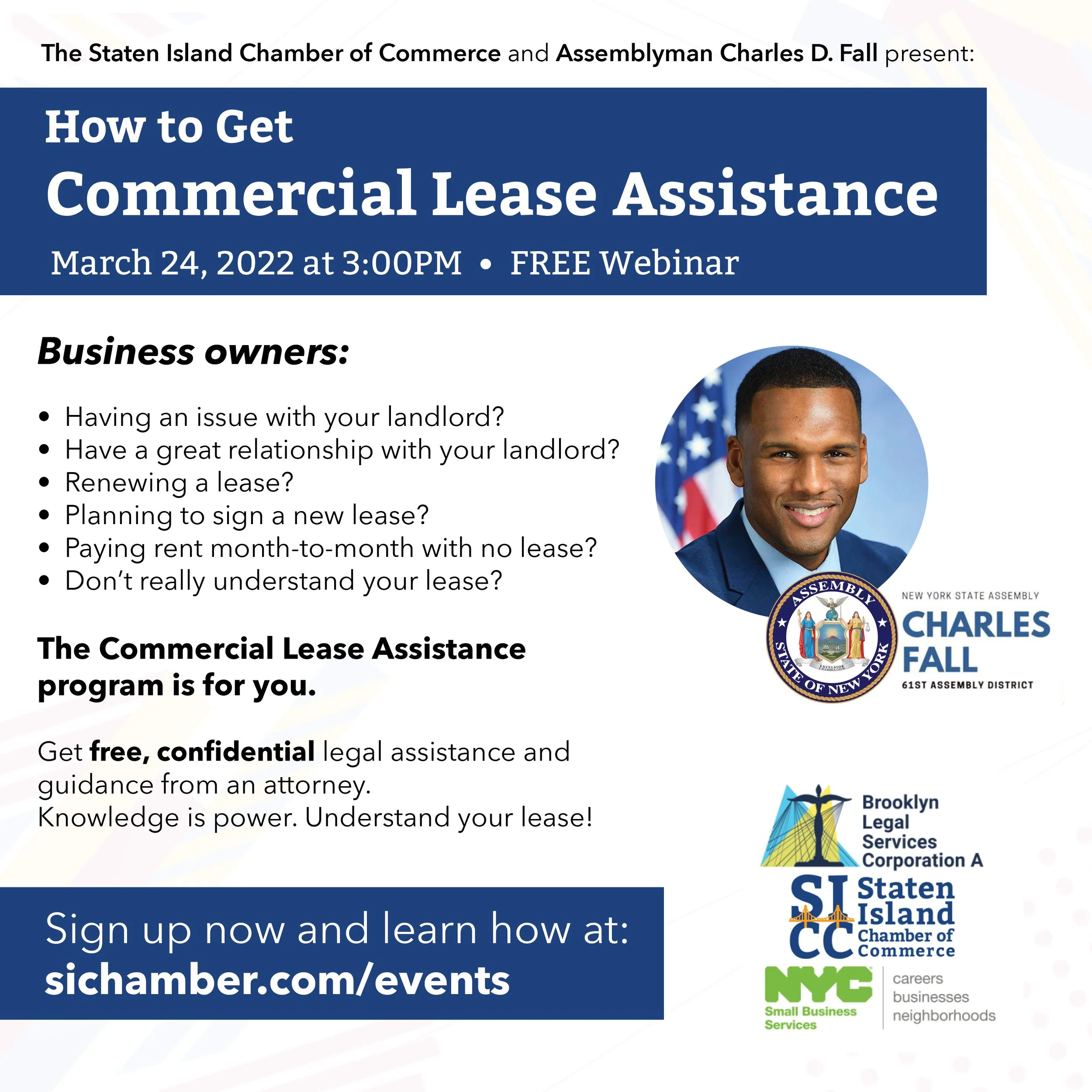How to Get Commercial Lease Assistance Webinar Thursday, March 24, 2022 3:00 PM 4:00 PM Google Calendar ICS Click Here to Register