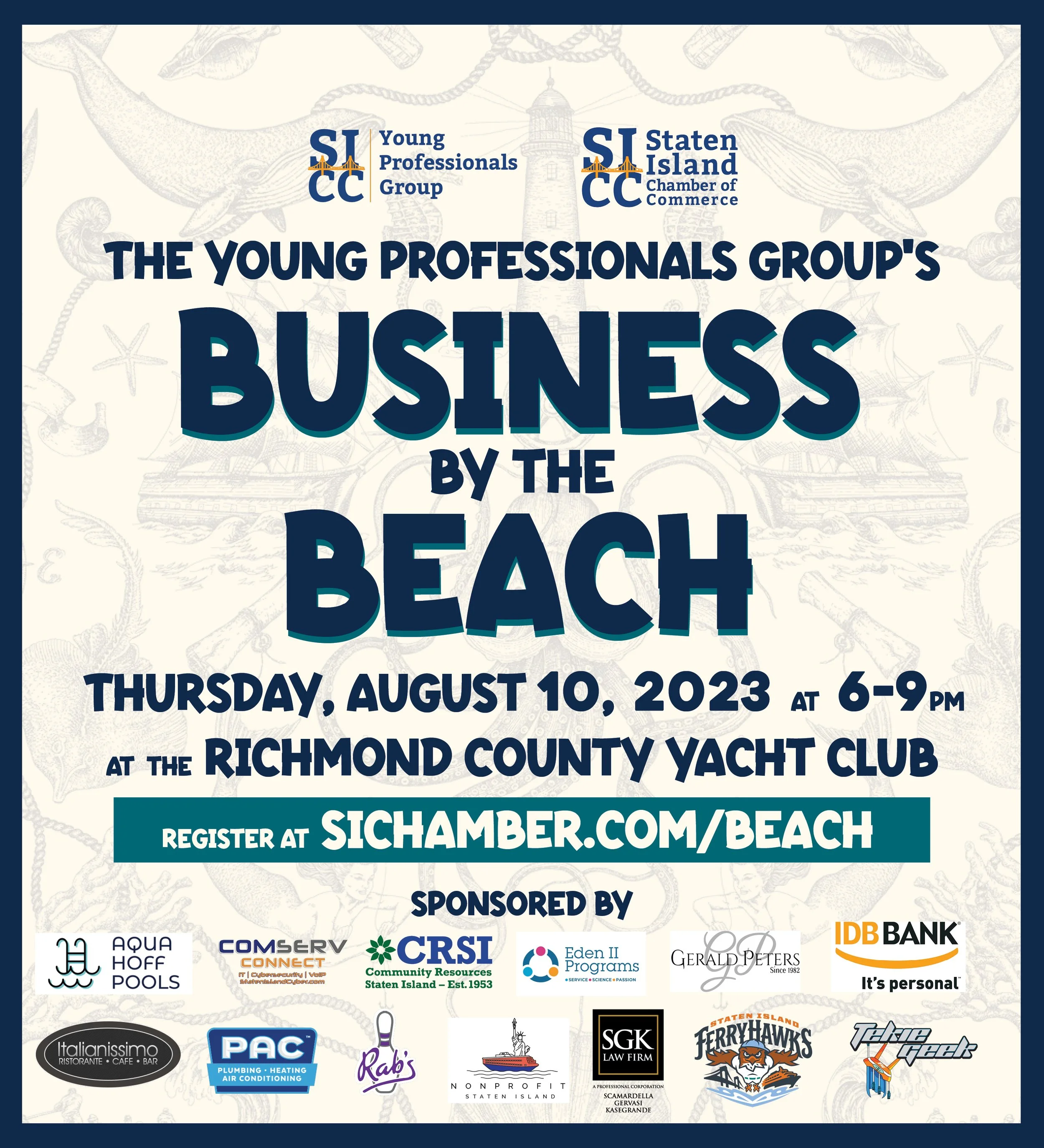 YPG's Business by the Beach 2023 Thursday, August 10, 2023 6:00 PM 8:55 PM Google Calendar ICS Register Now